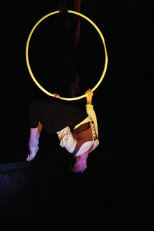 We rehearsed for about two months on the shoe, writing most of our own choreography, and collaborating with each other to figure out the best ways to execute the scenes. Writing the witch battle scene with Maggie (who played the witch) was by far my favorite scene. That girl can act and move so well, and I am extremely proud of our routine together, as well as her and my “brother's” (played by Arianne) scene, where *spoiler alert* the witch kills my brother. I also really enjoyed the transformation scene, because the mermaid (played by Olivia) gave an entrancing performance that I basically got to watch the whole time. I enjoyed performing in the Reuniting scene, where I saw my brother again after losing him deeper in the forest. I really liked that scene because I got to do a fun acro yoga act, as well as doubles AND triples on aerial silks! Also at the very end, I performed a solo Lyra piece, and that was also a favorite because I got to write the piece myself, on an apparatus that I wasn't as familiar with. I love a good challenge!